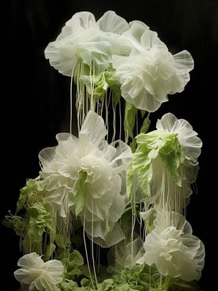 Chimerium brings together hybrid forms, suspended between plant, textile and fictional organism. These compositions evoke fragile and mutating presences, shaped by supple, translucent and layered materials, where the image becomes a space for metamorphosis.